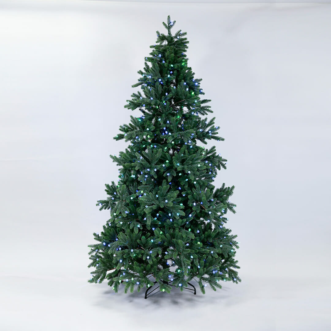 This version of the Coastal Fir has specialty G15 ‘color show’ lights. Lights utilize the quick-set pole connection, meaning all lights connect as soon as the tree is assembled.