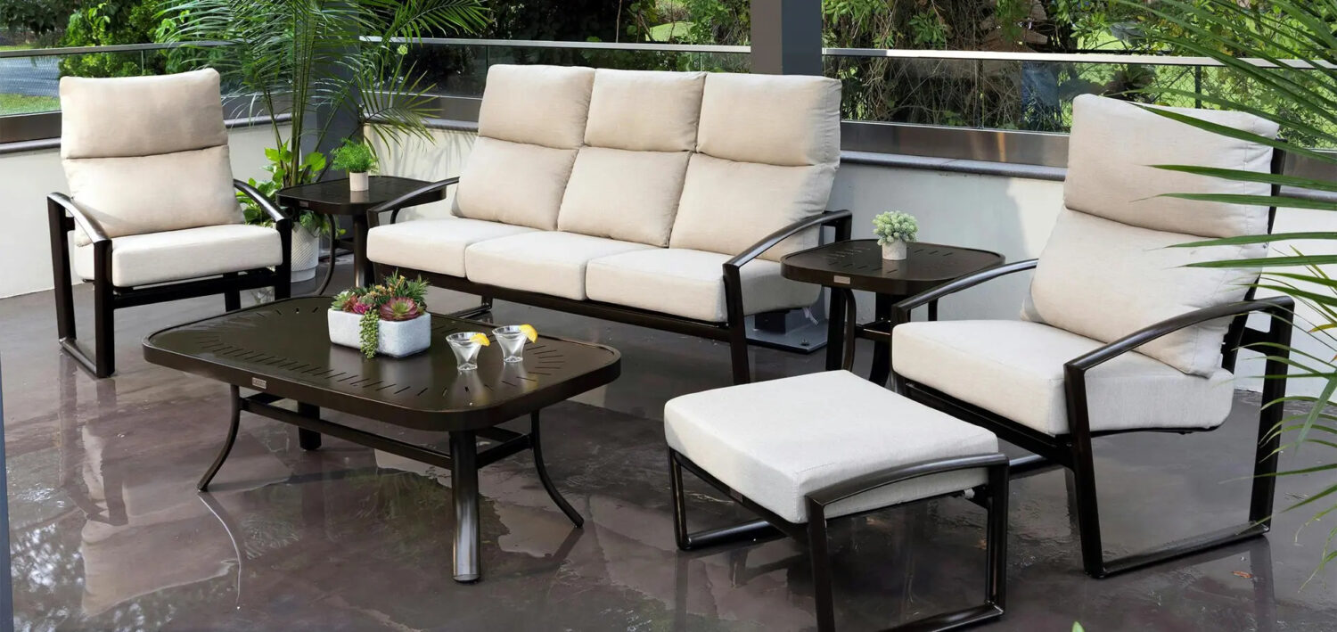 The Icon Collection blends bold, modern design with exceptional comfort, bringing sculptural beauty and enduring craftsmanship to any outdoor setting. Crafted from extruded aluminum with a rich mix of woven fabrics and customizable finishes, it delivers lasting durability and a distinctive style perfect for both quiet moments and lively gatherings.