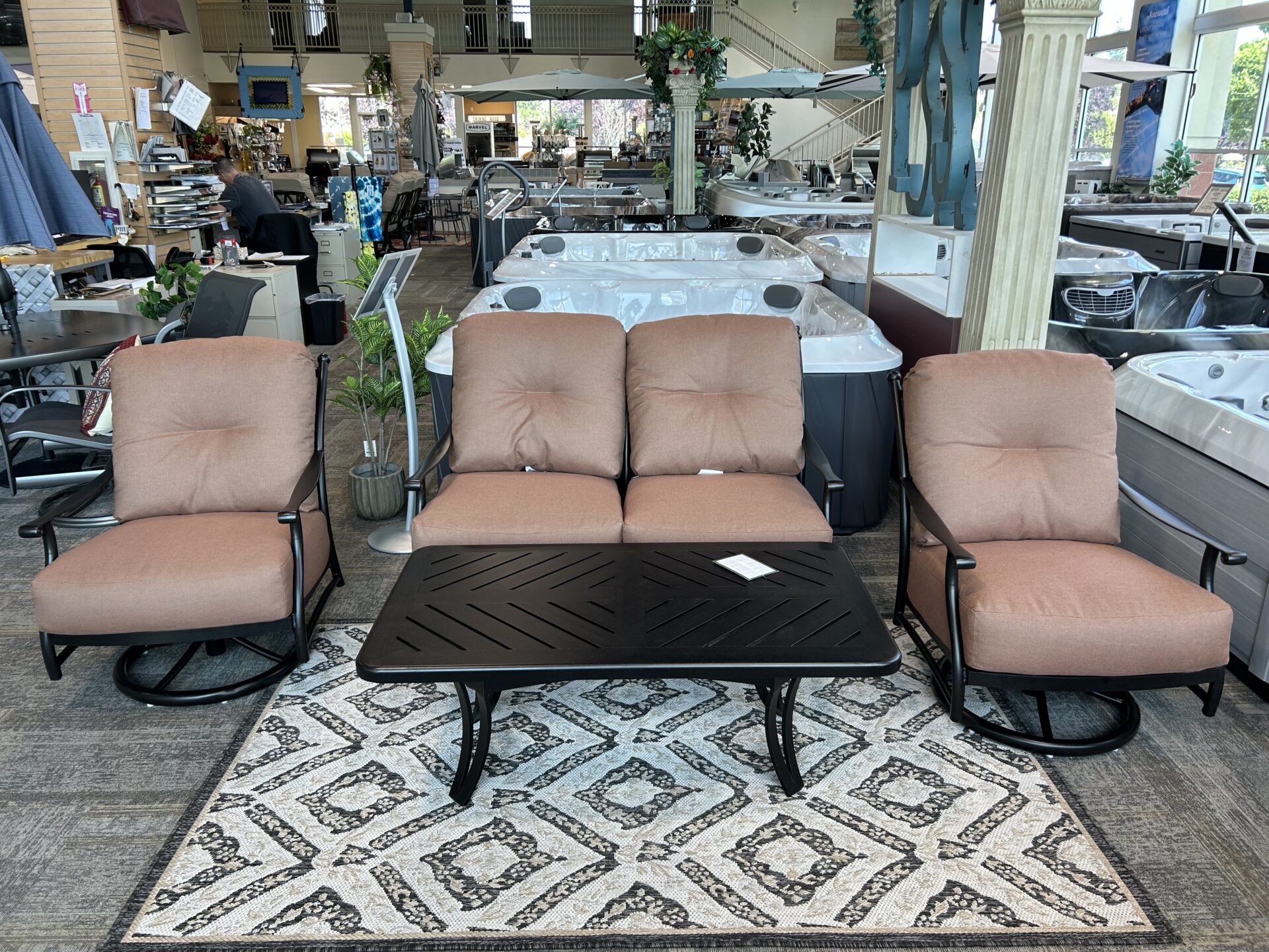 The set features plush, deep-seating cushions wrapped in premium Sunbrella fabric, offering superior resistance to fading, moisture, and everyday wear. These performance cushions provide a soft yet supportive seating experience, making it easy to relax in style.