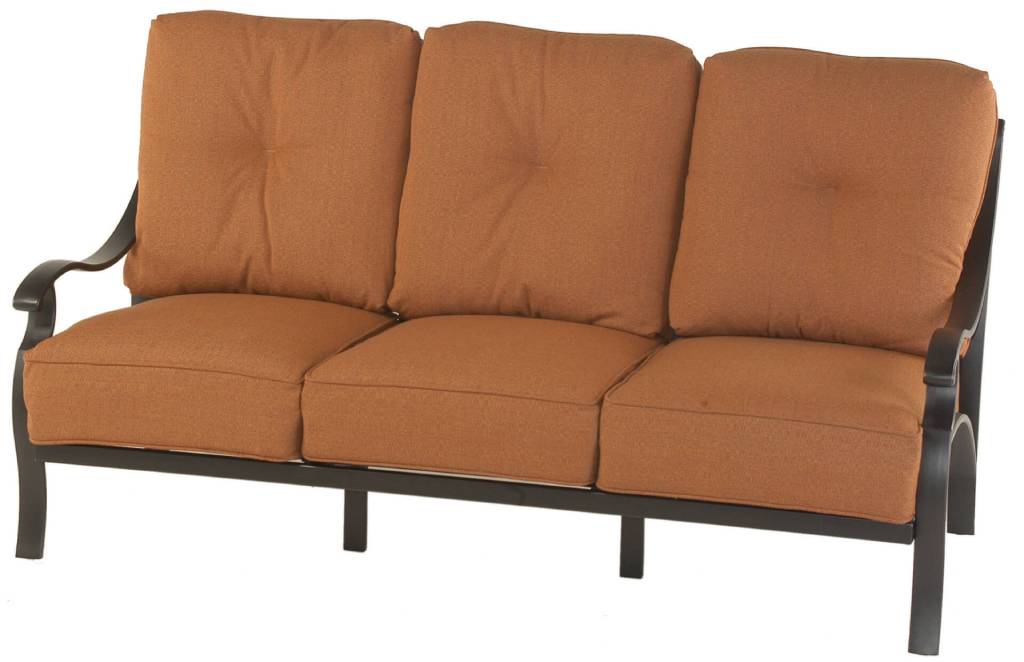 This Hanamint Somerset sofa is stocked in Terra Mist finish and Sunbrella Cast Slate (A) fabric.